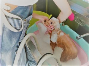 普段から愛犬エドちゃんに使用しているのと同じ低刺激のシャンプーを使って